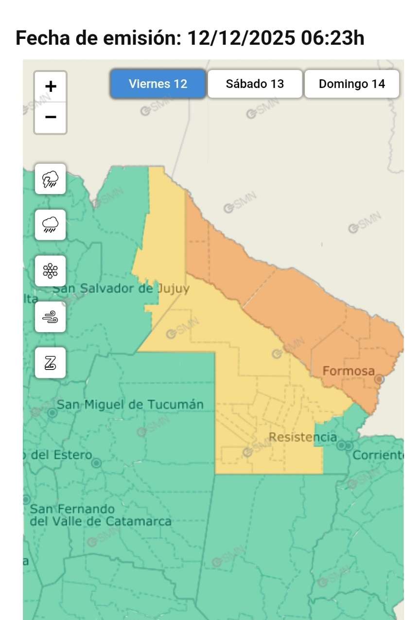 El Servicio Meteorológico Nacional (SMN) renovó este viernes, a partir de las 6:23 de la mañana, el alerta amarillo por tormentas que abarca a casi la totalidad de la provincia del Chaco.