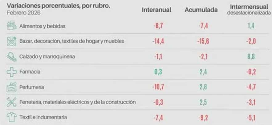Con este resultado, el sector encadenó diez meses consecutivos de caídas en las ventas, en un contexto donde los comercios enfrentan menores niveles de demanda y costos operativos elevados.