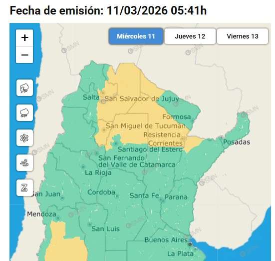 El Servicio Meteorológico Nacional emitió un alerta para toda la provincia este miércoles 11 de marzo. En Resistencia se espera una jornada de mucha inestabilidad, con una temperatura máxima de 30°C y alta humedad.