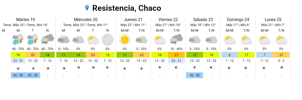 En tanto, también se emitió un Alerta Naranja para los departamentos: Chacabuco – Comandante Fernández – Doce de Octubre – Dos de Abril – Fray Justo Santa María de Oro – General Belgrano – Independencia – Libertador General San Martín – Mayor Luis Jorge Fontana – Nueve de Julio – O’Higgins – Presidencia de la Plaza – Quitilipi – San Lorenzo – Sargento Cabral – Tapenagá – Veinticinco de Mayo