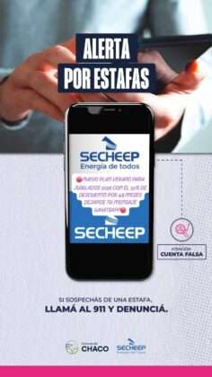 Desde la empresa provincial remarcaron que Secheep NO realiza este tipo de gestiones y pidieron a la población extremar precauciones para evitar caer en engaños. En ese sentido, recordaron que la empresa no ofrece descuentos a través de llamados o mensajes, no se comunica con los usuarios para solicitar datos personales y tampoco gestiona ni realiza inscripciones al subsidio nacional de energía. Asimismo, indicaron que ante cualquier comunicación sospechosa, los usuarios deben cortar inmediatamente el contacto y realizar la denuncia correspondiente llamando al 911.