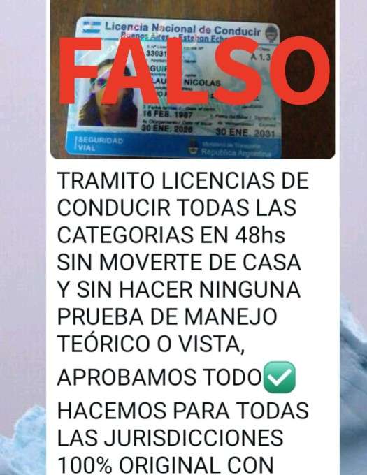 Posteriormente, el estafador envía comprobantes falsos de multas inexistentes y presiona a las víctimas para que realicen nuevas transferencias, bajo la amenaza de impedir la entrega de la licencia. Incluso remite una imagen apócrifa del supuesto carnet y solicita otro pago adicional, indicando finalmente que deben retirar el plástico físico en las oficinas de Licencias de Conducir ubicadas en avenida Lavalle 750.