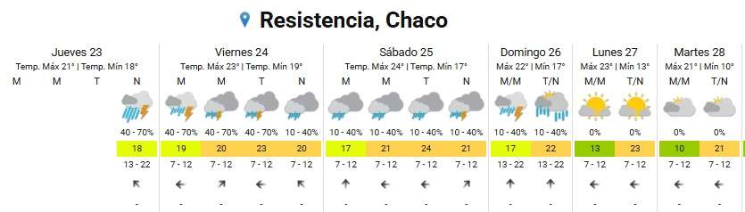 La inestabilidad será la tendencia predominante en el área metropolitana de Resistencia. Para este jueves 23, se anticipan tormentas fuertes con temperaturas que oscilarán entre los 18° y los 21°.