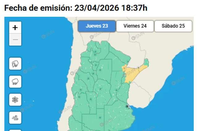 El Servicio Meteorológico Nacional emitió una advertencia para este jueves 23 de abril ante la llegada de fenómenos de variada intensidad. Se esperan precipitaciones acumuladas de hasta 80 mm y ráfagas que podrían alcanzar los 70 km/h.