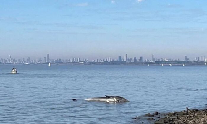 Una ballena encallada encontraron en la Costanera Norte, en la Ciudad de Buenos Aires, y se trata del segundo animal que aparece en el Río de La Plata en menos de una semana.