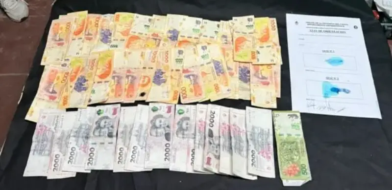 Durante el registro se secuestraron 65 envoltorios con cocaína con un peso total de 18,2 gramos, 65.200 pesos en efectivo y un teléfono celular iPhone 13.