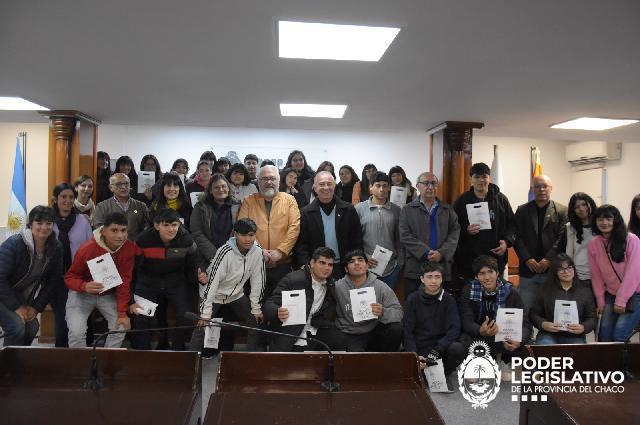 La presidenta de la Legislatura, Carmen Delgado, junto a sus partes Samuel Vargas y Carlos Salom, compartieron con 55 estudiantes y profesores de la EES Nº 95 «Felipe Gallardo» una jornada de formación sobre el funcionamiento de la Cámara de Diputados. Oportunidad en la que acompañó la jornada el concejal por Resistencia, Ramón Romero.