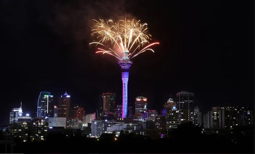 Los festejos de Nueva Zelanda se dieron en torno a la Sky Tower de Auckland (a las 8 de Argentina), sitio que dejó postales preciosas con las luces en el cielo nocturno y el entusiasmo de la gente allí presente.