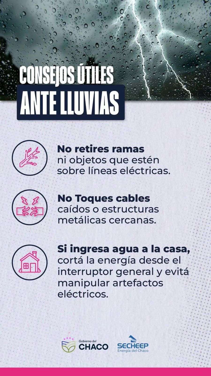 En ese sentido, remarcaron la importancia de no retirar ramas ni objetos que se encuentren sobre líneas eléctricas, ya que esta tarea debe ser realizada exclusivamente por personal especializado.