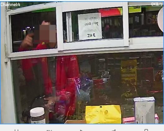 Gracias a las cámaras de seguridad, se logró identificar al presunto autor vistiendo un buzo rojo de la empresa Shell. En otras imágenes, se lo ve con una campera gris con capucha y el rostro pintado, intentando ocultar su identidad.