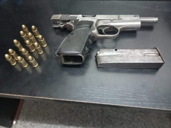 Durante el procedimiento, los uniformados encontraron en poder del acompañante un arma de fuego tipo pistola, marca Browning calibre 9 mm, con numeración limada y un cargador con 13 cartuchos del mismo calibre.