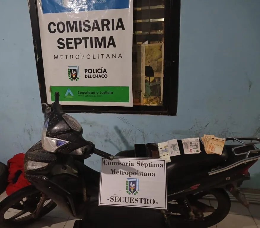 Durante la inspección del rodado, una motocicleta Honda Wave sin dominio visible, los agentes encontraron en el baúl el teléfono celular y el dinero denunciado como sustraído, procediendo al secuestro de los elementos y del vehículo, así como a la conducción de los sospechosos a la dependencia policial, previo paso por sanidad.