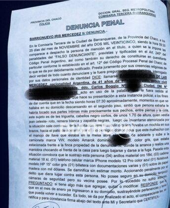 La propietaria manifestó que el intruso sustrajo una computadora y un teléfono celular iPhone. Además, habría ingresado a una habitación donde manoseó a la mujer, configurando un presunto intento de abuso.