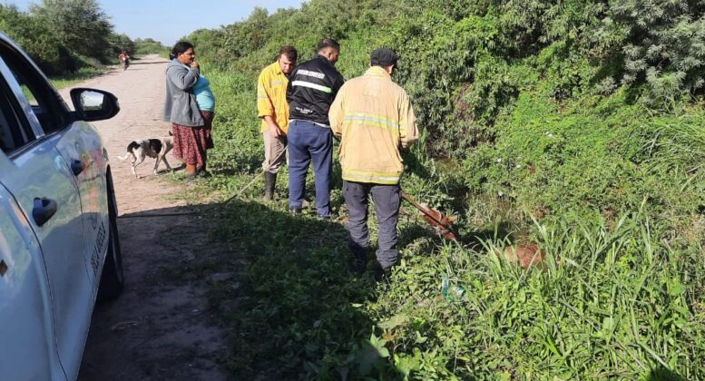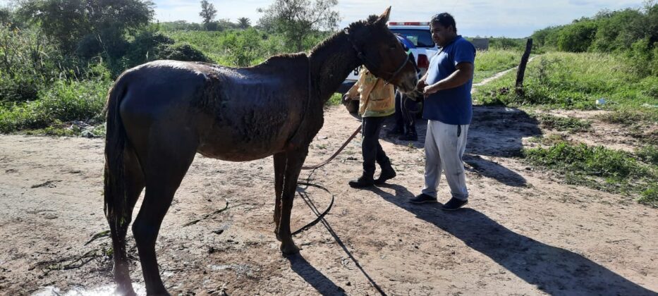 Esta mañana alrededor de las 10, efectivos de la División Bomberos de Villa Ángela realizaron con éxito el rescate de un caballo que había caído a una cuneta con agua y barro y no podía salir por sus propios medios.