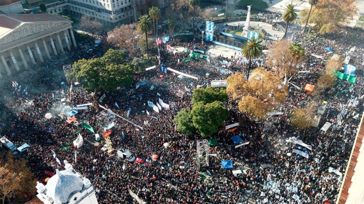 Lo cierto es que las fotos aéreas mostraron una Plaza de Mayo colmada. En Avenida de Mayo había manifestantes hasta 9 de Julio y tanto Diagonal Sur como Diagonal Norte lucían repletas.