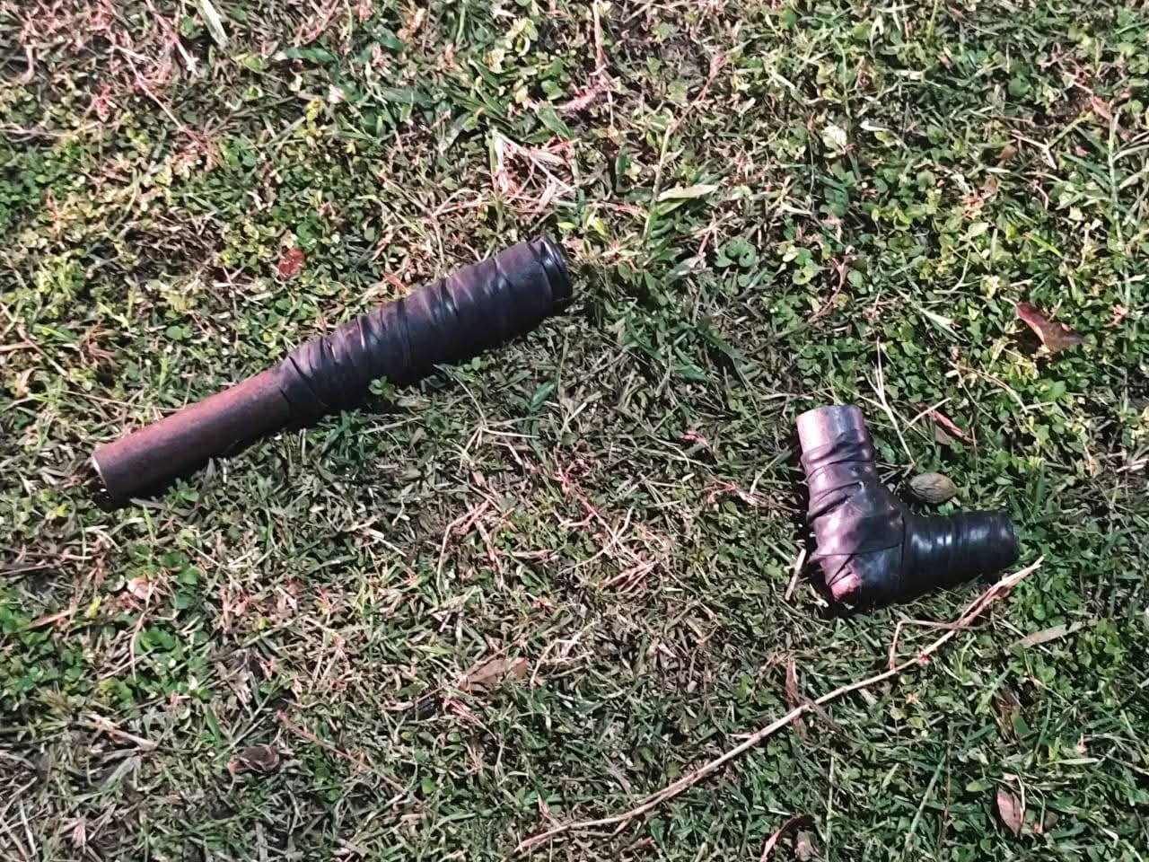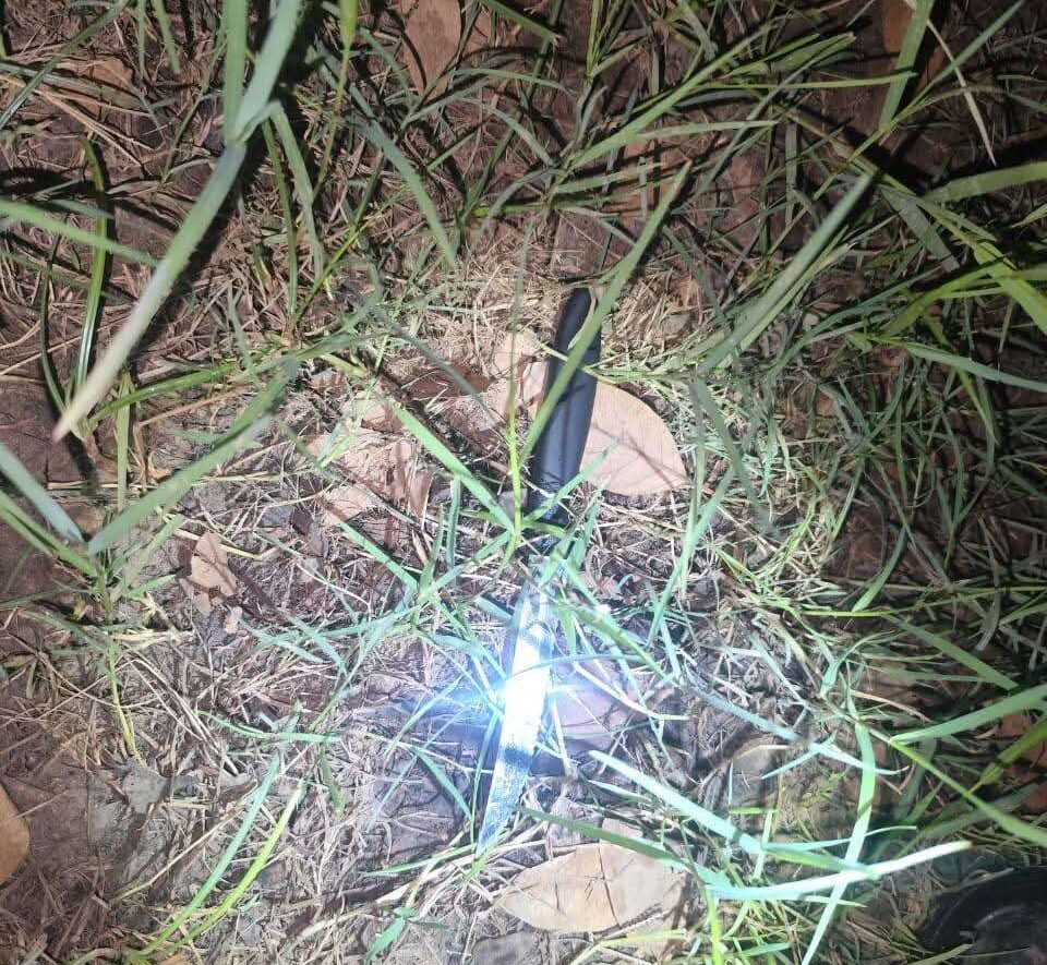 En el lugar, la policía secuestró un cuchillo tipo serrucho con cabo negro, presuntamente utilizado en la agresión, y un arma de fabricación casera (tumbera).