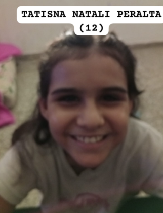 Tatiana Peralta: tiene 12 años, 1.60 metros de altura, tez blanca, cabello y flequillo oscuro. Al momento de su desaparición, vestía un buzo verde.