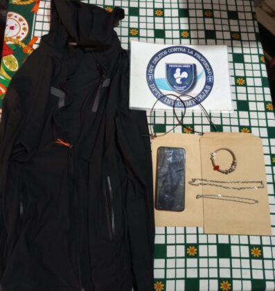 Durante los procedimientos realizados esta mañana, la policía incautó una campera, precintos, una barreta de hierro, un celular y varias joyas de acero quirúrgico, elementos que podrían haber sido utilizados en el robo o formar parte del botín.