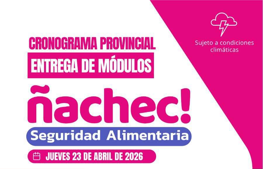 Debido a las condiciones climáticas adversas, el Ministerio de Desarrollo Humano del Chaco ha informado modificaciones en el cronograma provincial de entrega de módulos alimentarios «Ñachec» para hoy, jueves 23 de abril de 2026.