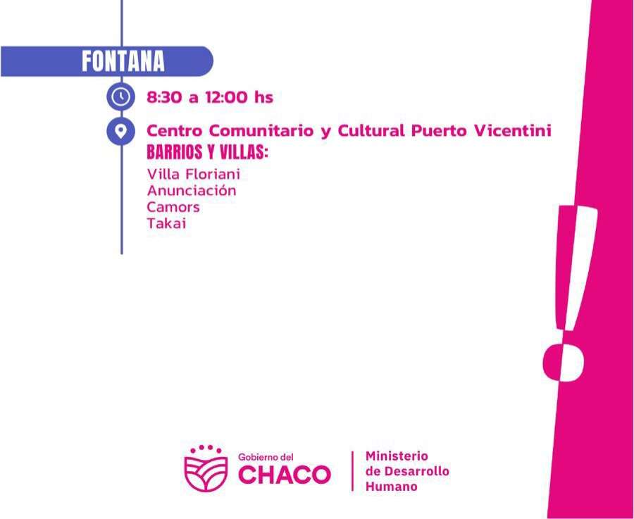 La entrega se mantiene con normalidad únicamente en la localidad de Fontana. La actividad se desarrollará en el Centro Comunitario y Cultural Puerto Vicentini, en el horario de 8:30 a 12:00 hs.