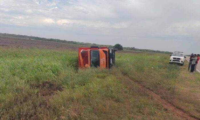 Un camión de carga Iveco volcó sobre la banquina de la Ruta 13, a unos 5 kilómetros de General Pinedo, en la mañana del jueves. El conductor de 32 años relató que al pasar por un extenso charco de agua, el vehículo comenzó a zigzaguear de manera incontrolable, terminando volcado.