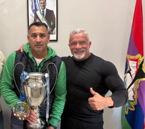 El presidente del IDCH, el profesor Fabio Vazquez, recibió ayer al reciente campeón panamericano NABBA, Mario Monfardini. El atleta obtuvo el título en Guadalajara, México, durante el primer torneo panamericano de la Asociación NABBA.