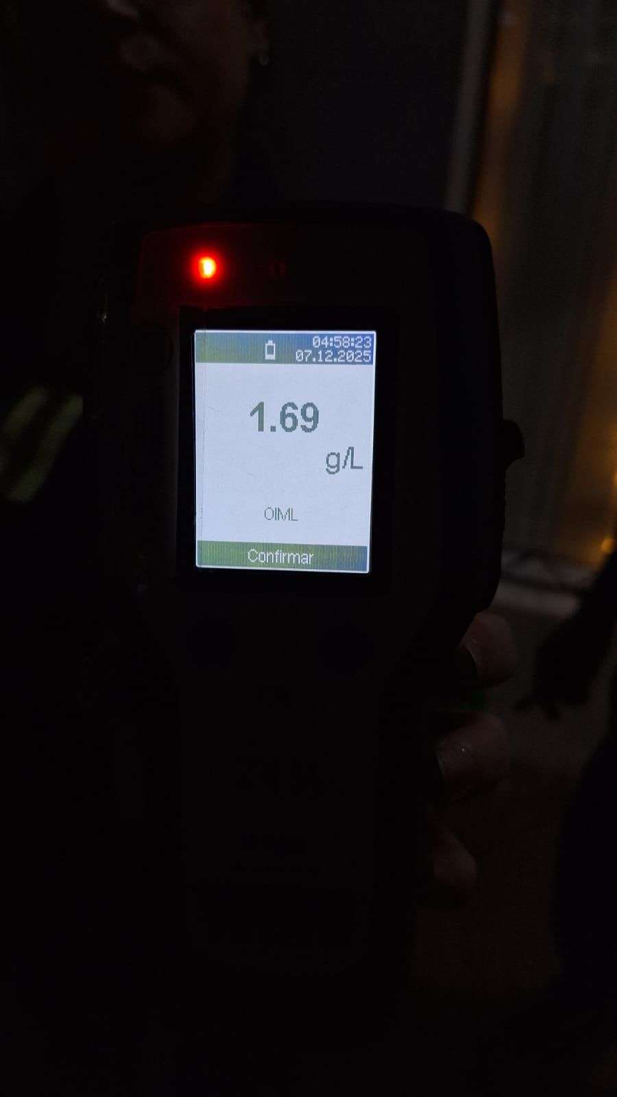 Al realizar el test de alcoholemia, el resultado fue de 1,93 g/l, además de comprobarse que el vehículo no contaba con seguro vigente. El auto fue retirado del lugar y se labraron las actas correspondientes.