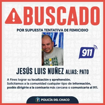 La Policía del Chaco realizó este miércoles un operativo en una vivienda de la calle Molina al 1200, luego de una denuncia anónima, en el marco de la búsqueda de Jesús Luis Núñez, alias “Pato”, de 46 años, imputado por tentativa de femicidio.
