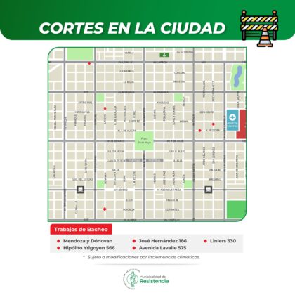 La Municipalidad de Resistencia y la Dirección de Vialidad Provincial informan los sectores donde habrá trabajos de bacheo, por lo que el tránsito estará restringido esta semana, siempre que las condiciones climáticas los permitan.