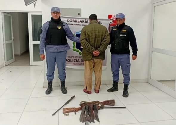Los agentes llegaron al lugar poco después de las 21 horas y, al confirmar la situación, ingresaron a la vivienda. Allí encontraron al agresor, un hombre de 38 años, y en la mesa descubrieron siete cuchillos de diferentes tamaños, así como un rifle de aire comprimido modificado a calibre 22 y 20 cartuchos. Este armamento fue confiscado como prueba.