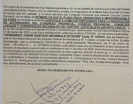 Hasta ahora, el PJ chaqueño no ha emitido ninguna respuesta oficial a la solicitud. Sin embargo, fuentes del partido reconocen que la situación “ya no puede permanecer en silencio” y que la dirección actual está considerando qué pasos tomar.