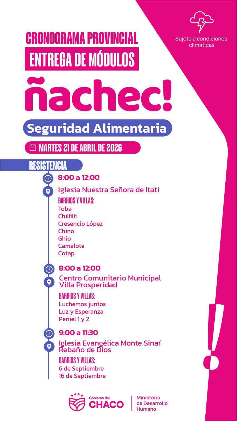 Cronograma de entrega de módulos alimentarios Ñachec: Resistencia activa sus puntos de distribución este martes