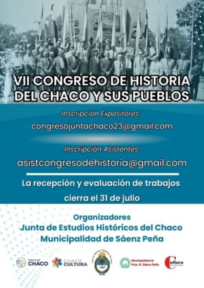 Además, el VII Congreso “Historia del Chaco y sus Pueblos” tendrá Mesas expositoras con diversas temáticas, tales como la de “Estudios patrimoniales y gestión cultural en el Chaco: memoria, instituciones y desarrollo local”; “La génesis de los pueblos del Chaco”; “Estudios patrimoniales y gestión cultural en el Chaco: memoria, instituciones y desarrollo local”; “Estudios de la Educación en el Chaco y sus pueblos”; “Comunicaciones libres: historias de vida, biografías, recuerdos familiares y sociales, memorias de los pueblos”; “Un largo recorrido del Chaco desde los tiempos coloniales hasta los tiempos contemporáneos. Parte I”; y “Un largo recorrido del Chaco desde los tiempos coloniales hasta los tiempos contemporáneos desde la historia política. Parte II”.