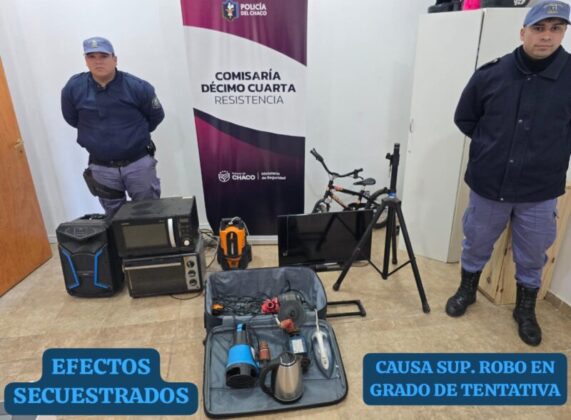 El hecho ocurrió cerca de las 10:30 en una vivienda ubicada en Uriburu al 3300, cuando un llamado de vecinos alertó sobre movimientos sospechosos en la propiedad. Al llegar, los uniformados encontraron al presunto sereno saliendo con varios objetos en las manos, y otros ya preparados para ser retirados.