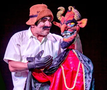 La pieza está inspirada en un relato recopilado por el escritor Tomás Carrasquilla y cobra vida en una versión libre y simbólica que mezcla tradición, humor y espiritualidad. Villalba define su espectáculo como una “alquimia teatral”, donde conviven máscaras, objetos y recursos escénicos que conmueven a públicos de todas las edades.