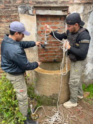 Con el apoyo de la División Bomberos, se desagotó el aljibe y se hallaron dos revólveres calibre 32, uno de ellos cargado. El detenido quedó a disposición de la justicia por infracción a la Ley de Estupefacientes y tenencia ilegal de armas.