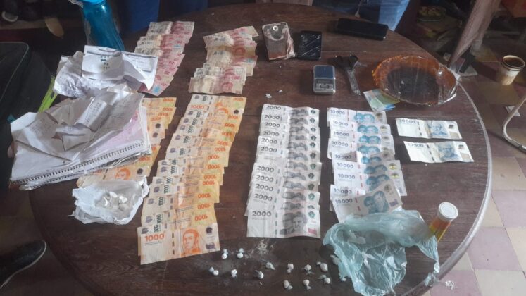 En el lugar se secuestraron 31 gramos de cocaína fraccionada, más de 178 mil pesos en efectivo, balanzas de precisión, celulares y recortes con anotaciones relacionados con la venta de droga.