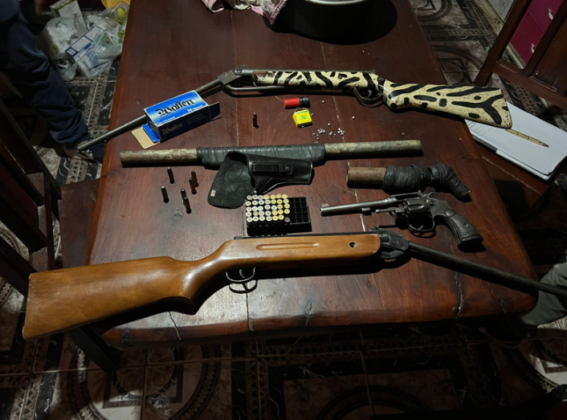 Entre los elementos incautados en esta vivienda se incluyen: un revólver calibre 38 con seis cartuchos; una caja con 35 cartuchos sin percutar del mismo calibre; un cartucho calibre 16 y otro calibre milímetros; un arma de fabricación casera tipo «tumbera».