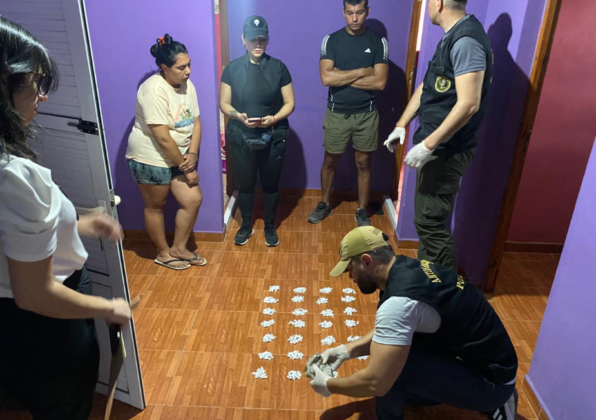 El primer allanamiento tuvo lugar en un inmueble ubicado en el barrio Santa Catalina, donde según tareas investigativas, operaba un punto de venta de estupefacientes bajo la modalidad de “búnker”. En el lugar se incautaron: 278 envoltorios de polietileno con aproximadamente 100 gramos de cocaína; un teléfono celular; 70 mil pesos en efectivo; un televisor LED, retenido como secuestro impostergable. Además, una persona que se encontraba en el lugar fue aprehendida y notificada de la causa por supuesta infracción a la ley de drogas. Las autoridades continúan investigando su grado de participación en la actividad ilícita.