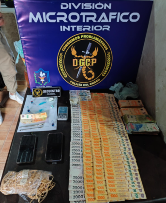El primer registro se llevó a cabo por la calle 12, allí verificaron cada habitación de la casa y encontraron 60 envoltorios con cocaína, con el peso total de 10 gramos, y 53 envoltorios con marihuana con 38 gramos. Además otros elementos que vinculaban al morador con la venta de estupefacientes como picador, trinchetas y cuchillos con restos de sustancia, y la suma de $18,300 pesos en efectivo.
