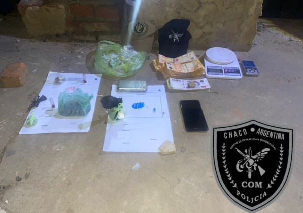 Una vez identificado, se trató de un hombre de 30 años, en cuyo poder se encontraron cuatro envoltorios con sustancia vegetal verde amarronada, uno con sustancia blanquecina, dos balanzas de precisión, un teléfono celular Samsung, y la suma de $380.000 en efectivo.