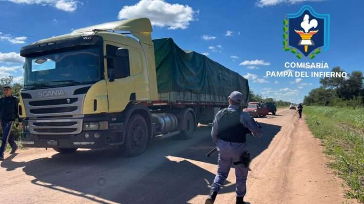 Durante los recorridos en la zona, los uniformados lograron interceptar un camión Scania con semirremolque que transportaba una importante carga compuesta por repuestos de motoniveladoras, tractores y hierros varios. En el vehículo viajaban el conductor y otro hombre domiciliado en la capital chaqueña.