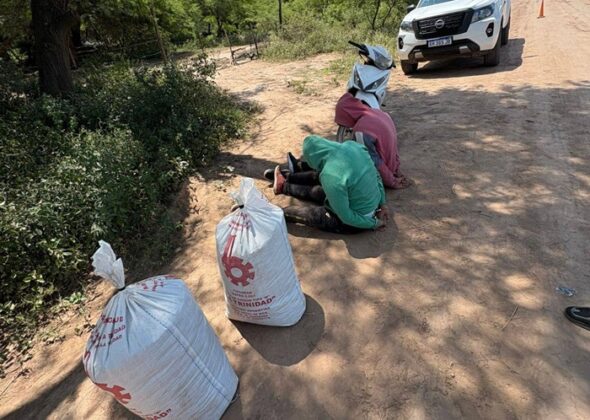 Durante el operativo, los agentes observaron una motocicleta con dos ocupantes que transportaban dos bultos de color blanco. Ante la actitud sospechosa, se procedió al seguimiento del vehículo, logrando demorar a su conductor y, tras una breve persecución en la zona boscosa, detener también al acompañante. Ambos presentaban lesiones leves producto del intento de huida.