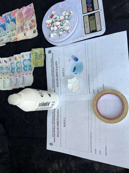 En presencia de un testigo hábil, los uniformados verificaron sus pertenencias y constataron que llevaba $91.500 en efectivo y 20 envoltorios con una sustancia blanquecina. Posteriormente, personal especializado del Departamento Drogas realizó la prueba de campo correspondiente, que arrojó resultado positivo para cocaína, con un peso total de 20 gramos.