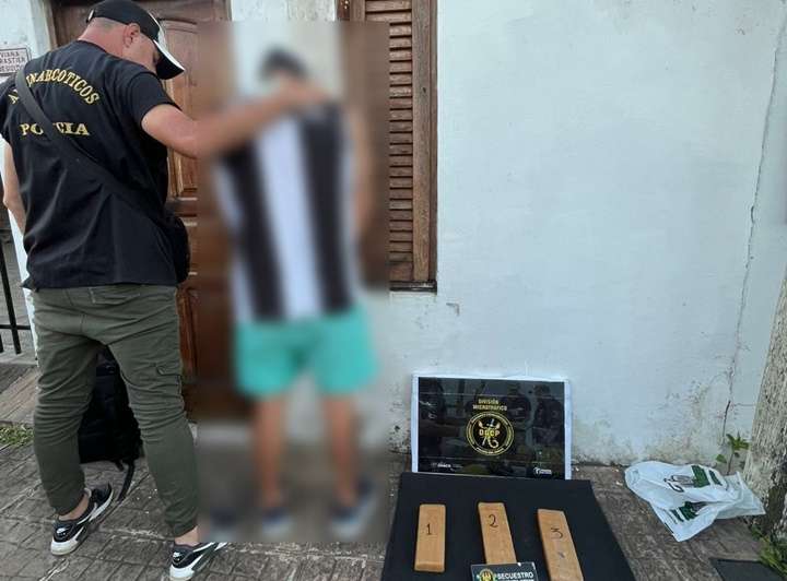 De inmediato los agentes observaron a un hombre de 28 años que fue demorado y que en su poder tenía tres formatos rectangulares de marihuana con un pesaje de 2 kilos y 10 gramos.