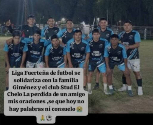 Una verdadera tragedia conmueve a la localidad de Fuerte Esperanza tras la repentina muerte de un joven de 22 años, quien falleció mientras disputaba un partido de fútbol con sus amigos. Diego Mariano Giménez se desplomó de manera repentina en plena cancha.