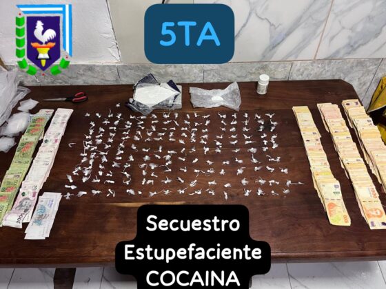 También secuestraron $793.200 en efectivo, un teléfono celular Samsung A10s, recortes de polietileno y una tijera, todos elementos relacionados con el fraccionamiento y comercialización de droga.