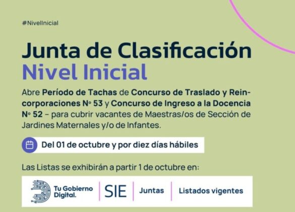 El Ministerio de Educación del Chaco, a través de la Junta de Clasificación de Nivel Inicial, informó que desde este 1 de octubre y por un lapso de diez días hábiles, se abrió el Período de Tachas correspondiente al Concurso de Traslado y Reincorporaciones Nº 53 y al Concurso de Ingreso a la Docencia Nº 52. El proceso está destinado a cubrir vacantes de maestras y maestros de jardines maternales e infantiles.