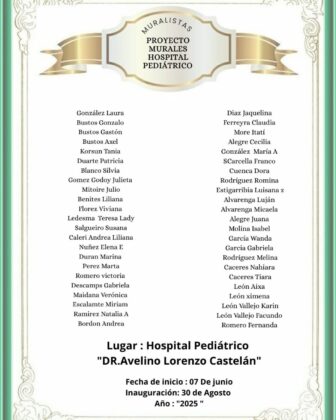 Este sábado 30 de agosto a las 10 de la mañana se realizará la inauguración de los murales en el área de internación del Hospital Pediátrico de Resistencia. La intervención artística fue realizada por un grupo de artistas plásticas bajo la coordinación de la muralista y profesora Laura González.