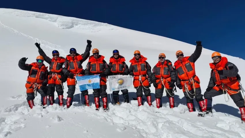 Las imágenes oficiales desde la cima registraron un hecho histórico para las tropas de montaña argentinas y un hito de cooperación militar internacional.